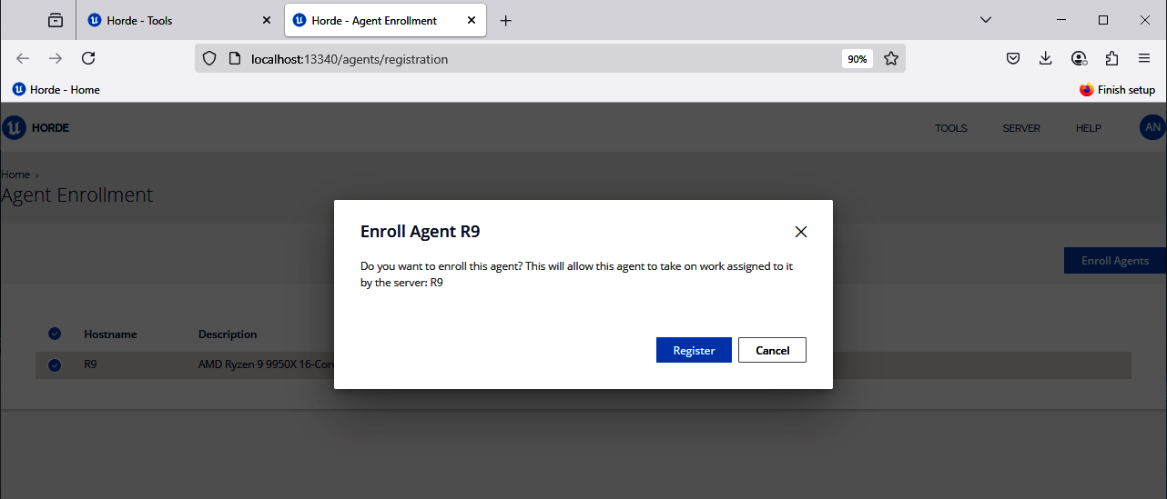 Use the Tools | Downloads menu to display a list of downloads, click Horde Agent (Windows Installer)
