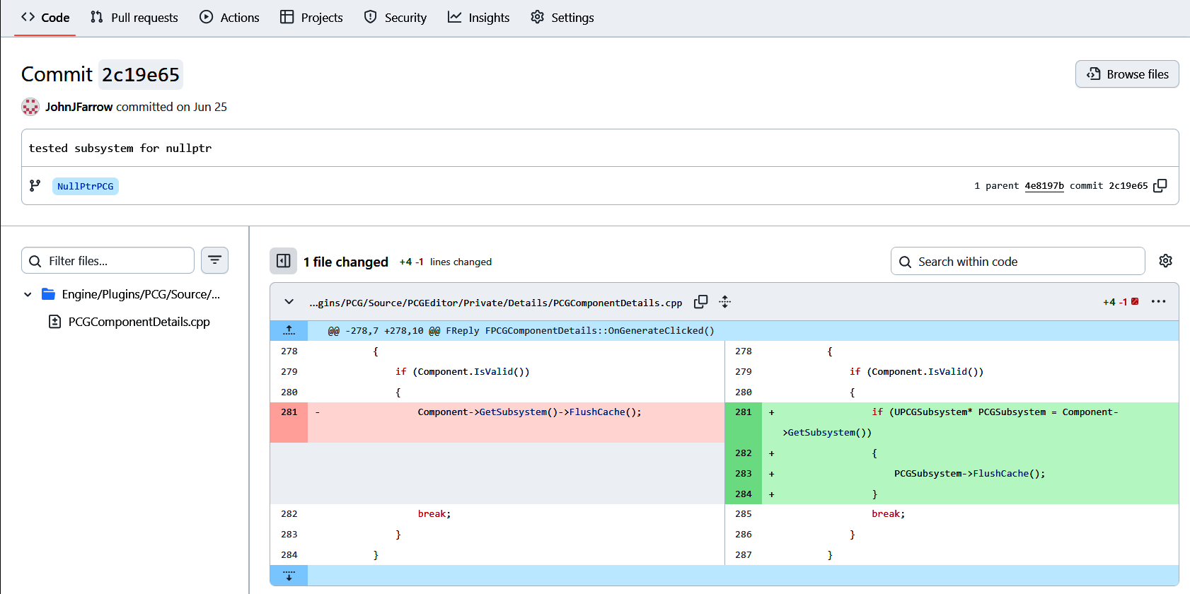 In one case I fixed a null pointer in PCG, so the branch is called "NullPtrPCG". It contains one commit and looks like this: